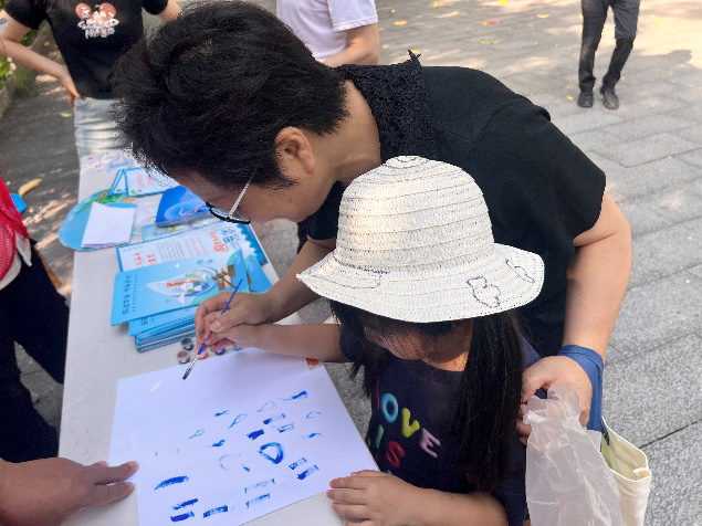 社区志愿者引领市民开启创意手工之旅,在手工扇子上拓印心仪图案并上书“水润荔湾千载盛,节制方得万代兴”“龙舟竞渡护清流,节水文化传千年”等节水标语,传递节水理念。