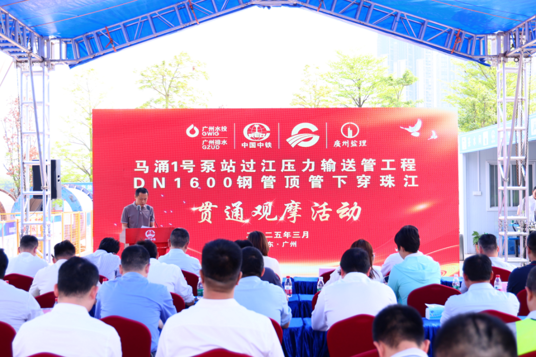 3月27日上午,马涌1号泵站过江压力管工程顶管下穿珠江段贯通观摩活动在广州市荔湾区广船滨江公园举行。网上投注app 、海珠区网上投注app 局、荔湾区网上投注app 局、广州水投、各参建单位代表参加。