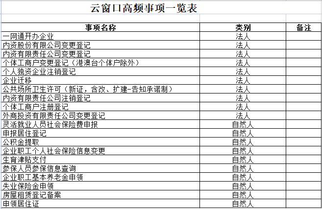 云窗口高频事项一览表